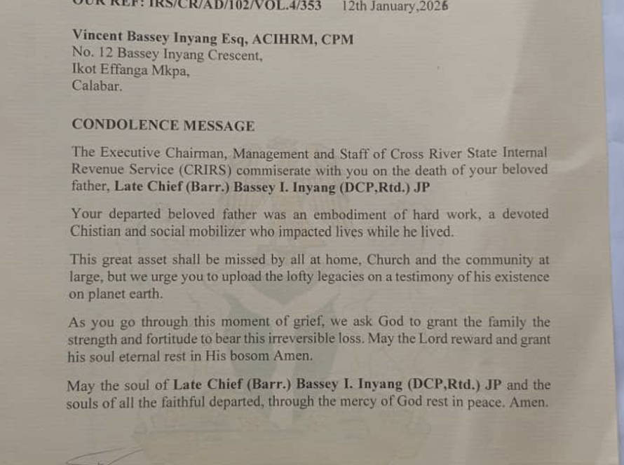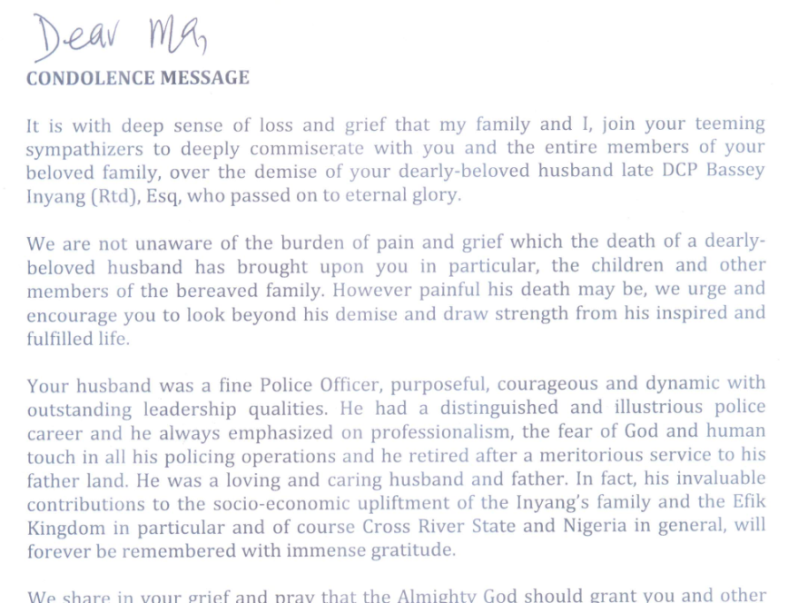 Condolence Message – From COMPOL (Barr) LAwrence E. Alobi