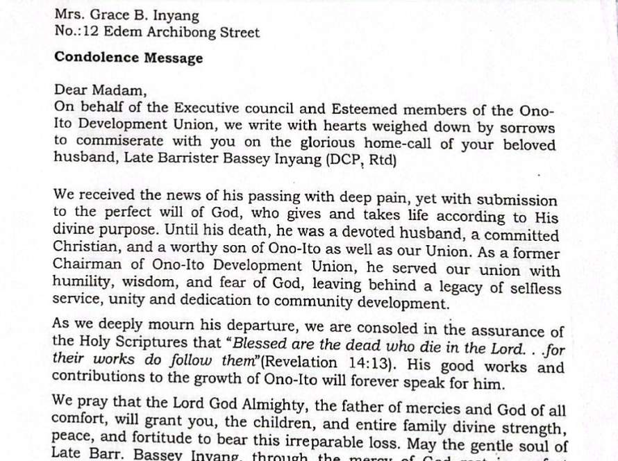 In Loving Memory of Chief Barr. Bassey Inyang, JP – From Otobong