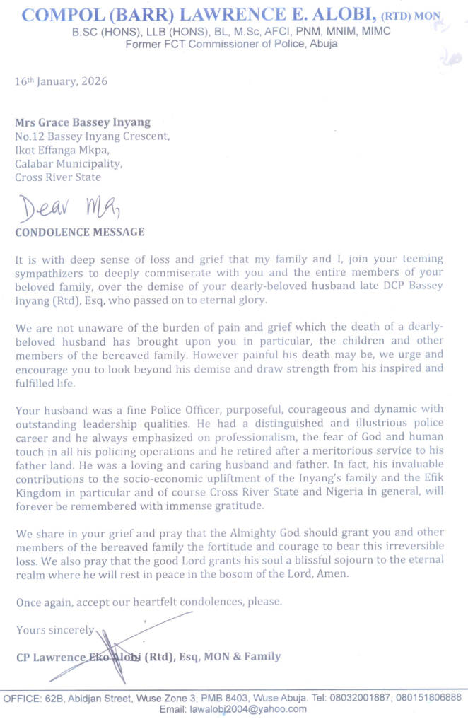 Condolence Message – From COMPOL (Barr) LAwrence E. Alobi