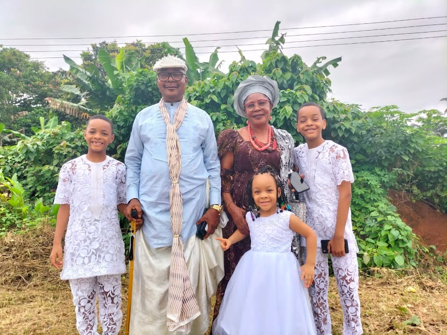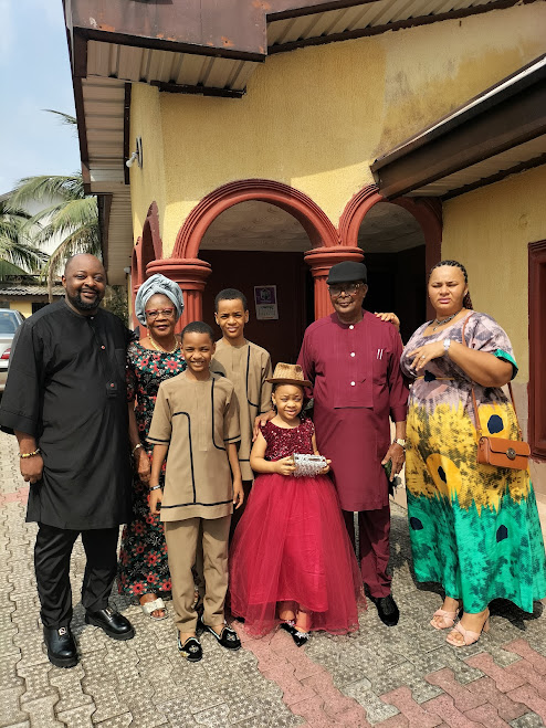 Chief (Barr.) Bassey Inyang was married to Deaconess Grace Bassey Inyang, his beloved wife of over four decades. Their union is blessed with three children, Charles, Patrica, and Vincent, their spouses, Margaret (Bose), Sam (Okhaide), and Sarah, and grandchildren (Jeremy, Claire, Liam, Paul, Gemma, Zoey, and Michael) who continue the family legacy of service and faith.